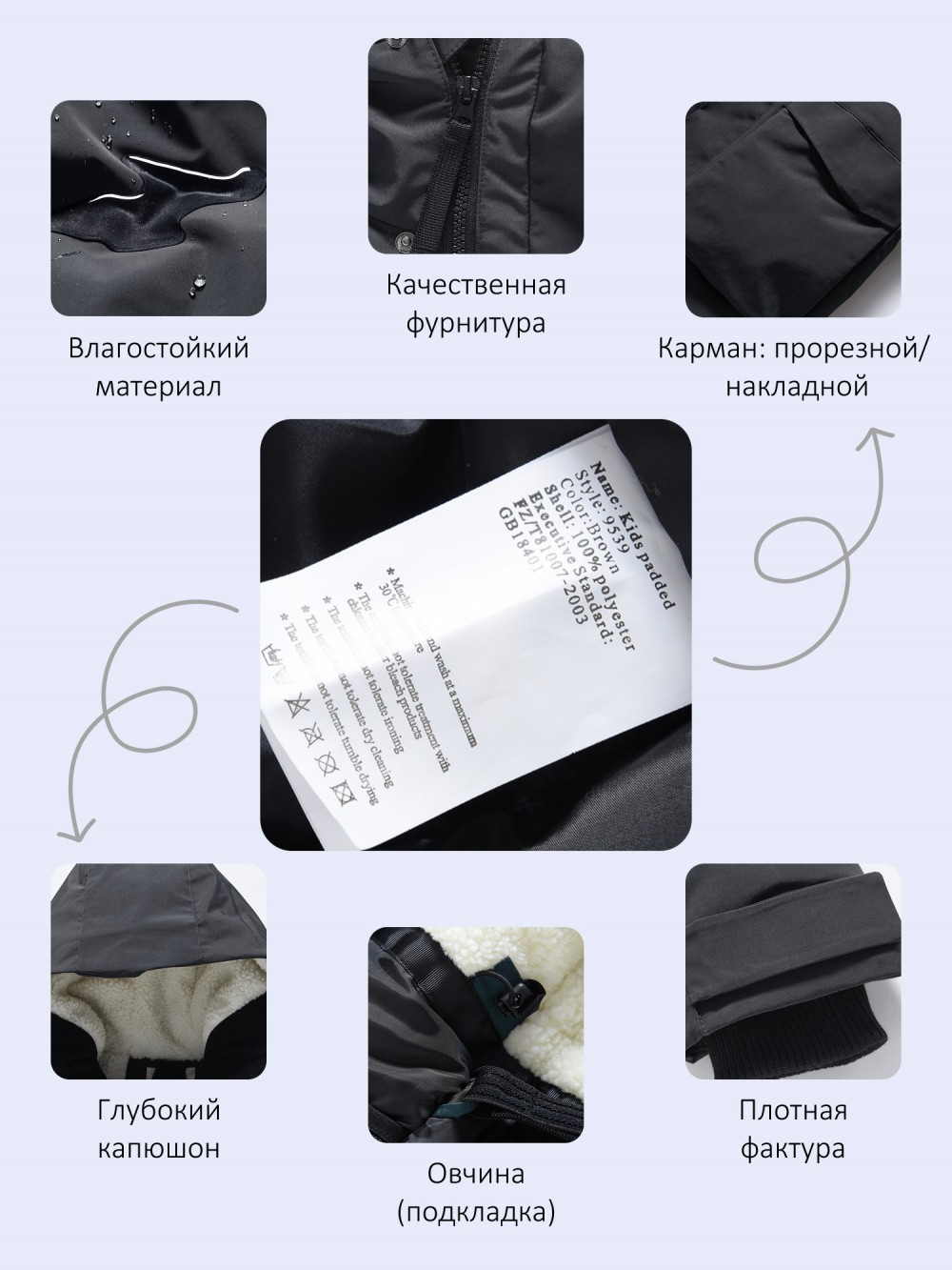 Практичные прорезные и накладные карманы позволяют удобно хранить необходимые вещи и согревать руки. Внутренние карманы делают модель ещё более функциональной. Светоотражающие детали и логотип со светоэффектом повышают заметность ребёнка в тёмное время суток.
